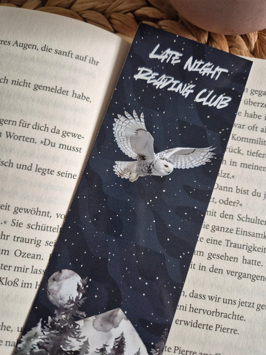 Lesezeichen Late Night Reading Club auf hochwertigem Paper gedruckt, Buchzeichen Eule Nacht