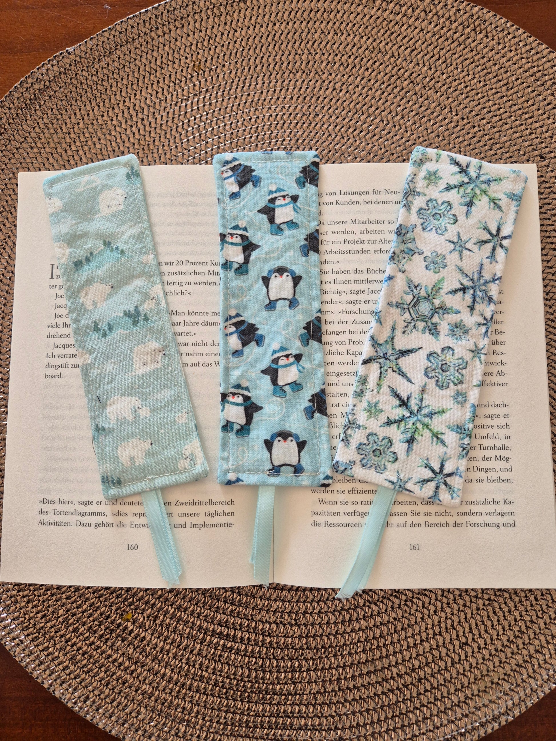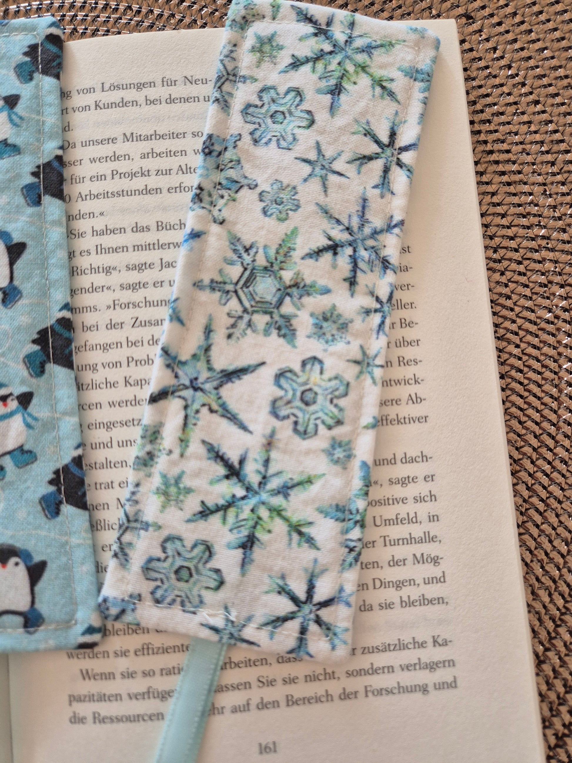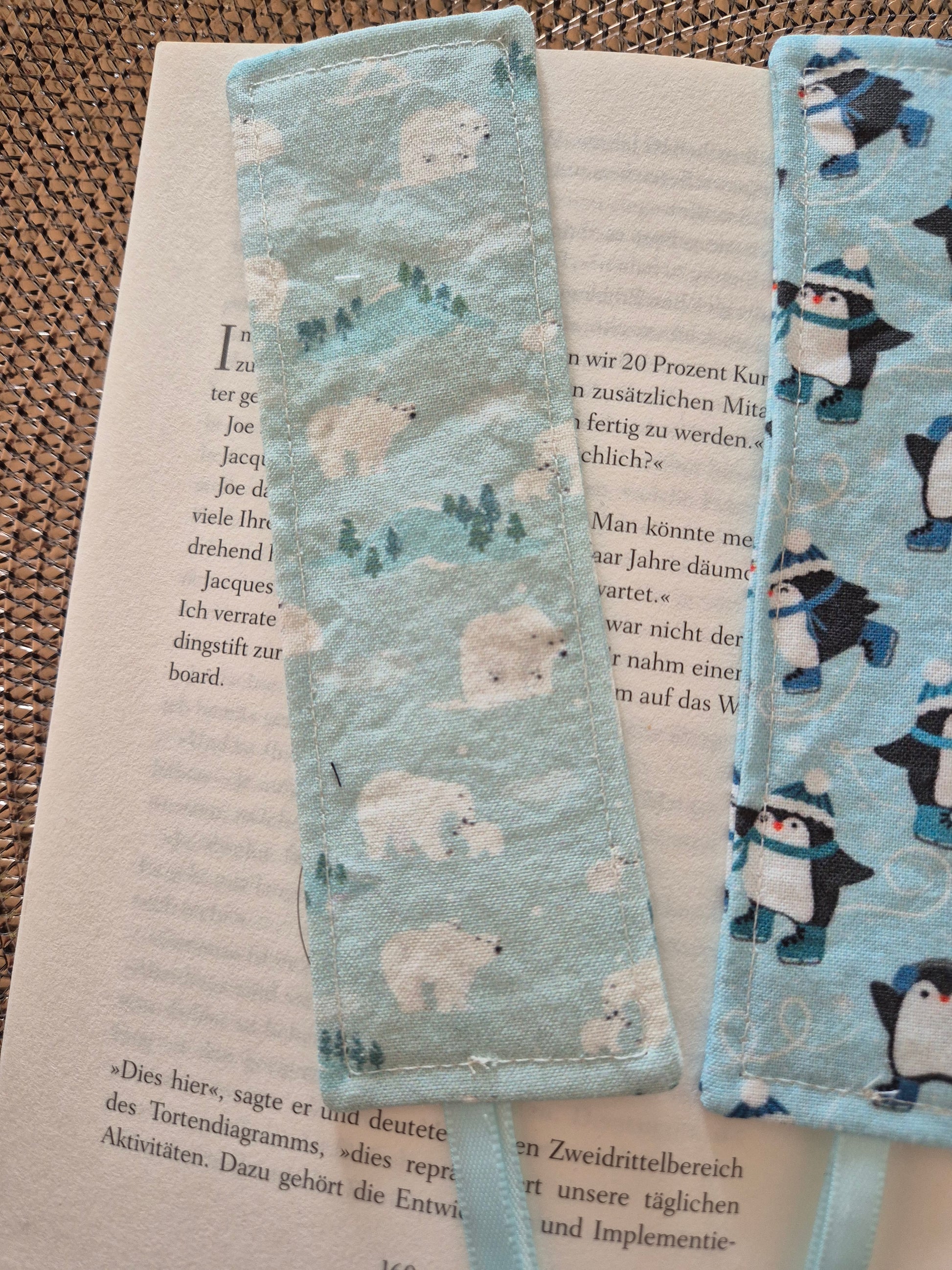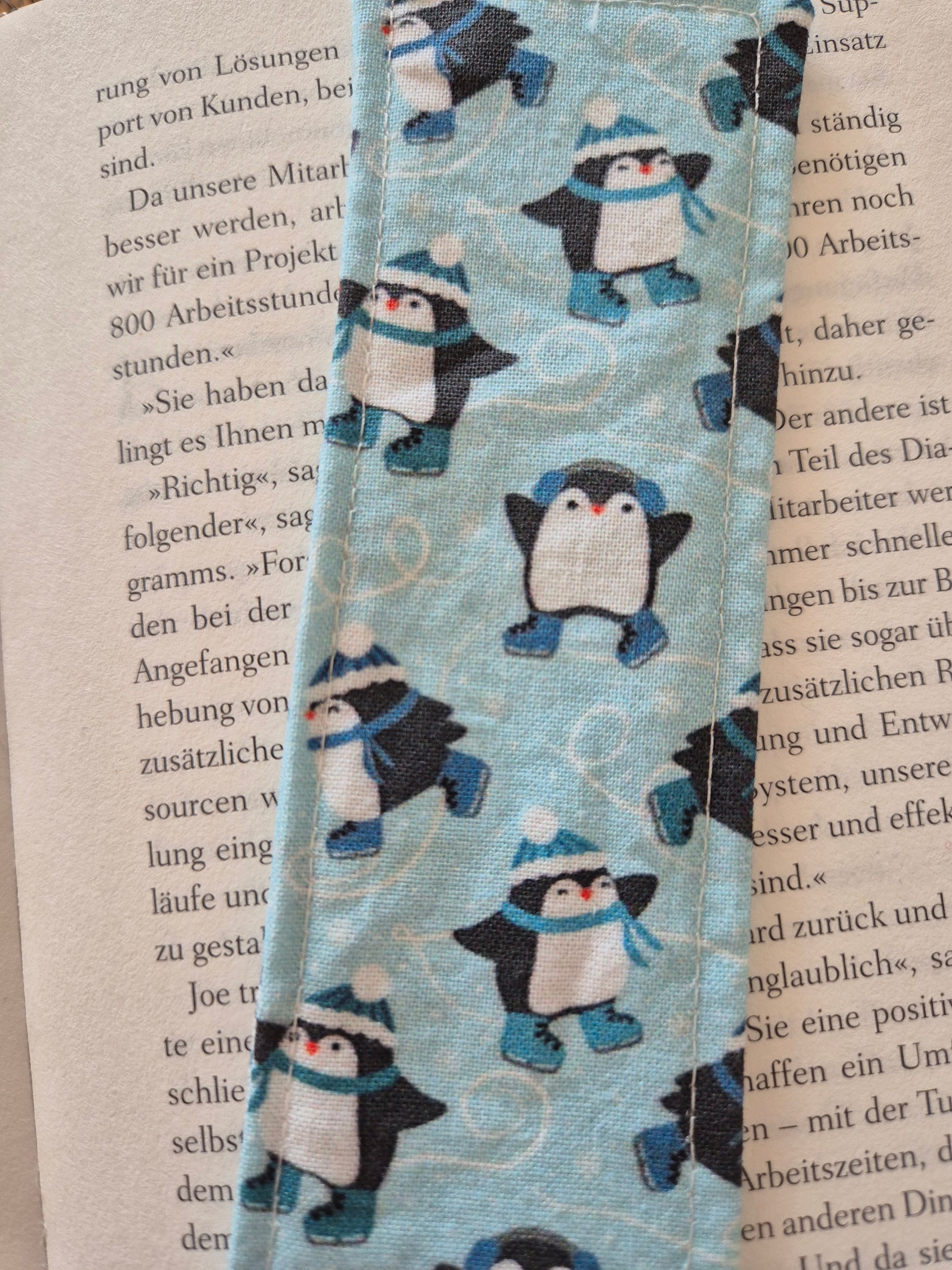 Lesezeichen Winter Pinguin Kawaii Design, handgenäht, doppelseitig, tolles Geschenk für Leseratten, Studenten und Journaling Fans vegan